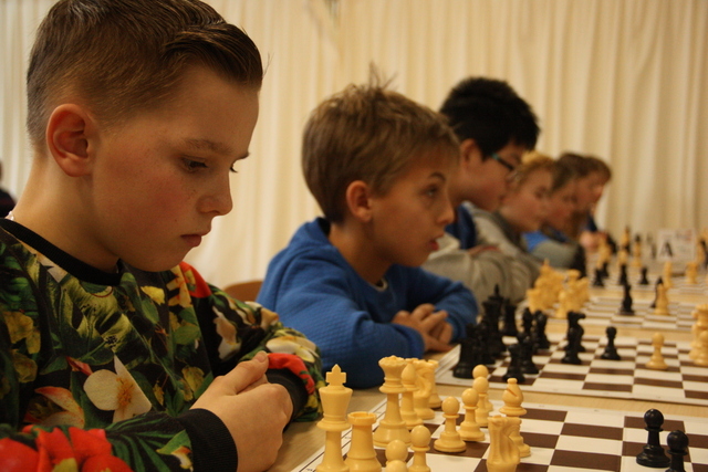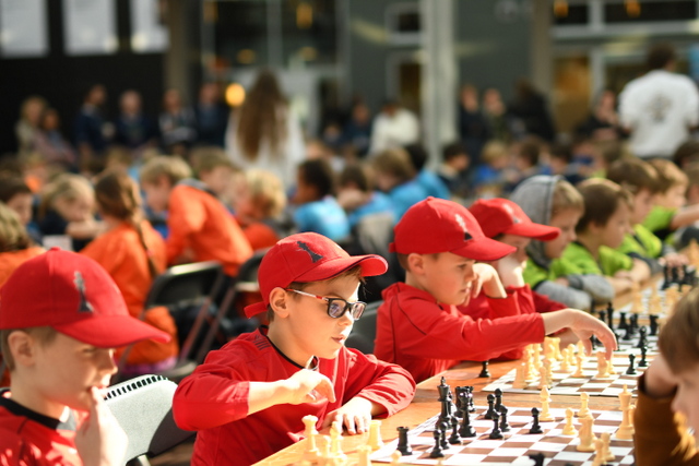 Schaken wordt met het jaar populairder in Zwolle. Een recordaantal van 26 scholen hebben zich aangemeld via Sportservice Zwolle. In de schaakarena konden 78 teams van 4 spelers tegelijk plaats nemen. In aanloop naar het toernooi zijn in allerijl extra schaakborden en schaakstukken aangeschaft. Stichting het Hervormd Weeshuis heeft deze extra onvoorziene kosten vergoed. Na een openingswoord van mevrouw Koster en Wethouder De Heer werd in 5 ronden uitgemaakt wie tot de beste schakers behoren in categorie A voor leerlingen uit groep 7 en 8 en in categorie B voor leerlingen t/m groep 6. In beide categoriën gaan er 8 teams door naar de finale. In Categorie A waren er 8 poules. Aleen de poulewinaars gaan dus door naar de finale. In categorie B zijn er 5 poules. Naast de poulewinnaars gaan ook de 3 beste nummers 2 door.