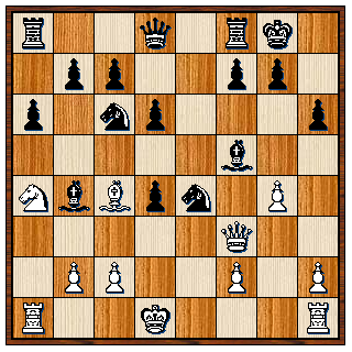 De Miklosloper aan zet! 22.Pe2 Slaan en Pf3, minstens een kleine kwal voor een rokadestelling! 22...Lxh3 23.Pe3 Okee... gewoon terug. Pion meer. 23...Le6 24.c4 ... slaan. Ja slaan, daar kan niks mis mee zijn. 24...Pf3+ OH was dat nou nodig?! 25.gxf3 exf3 26.Pc3 Ok nu wel slaan! Ja echt? Ok ja echt. We hebben trouwens bijna mat, maar die loper staat in de weg. Hoe gaan we dat doen dan?! 26... dxc4 27.La4 Ik zie het niet!! Ok schaak dan maar. Zaal: *denkdenk* tja, schaak.. 27...Lh2+ 28.Kh1 En nu een goeie zet, wie ziet er een goeie zet!!! Zaal: * denkdenk* F: *doet willekeurige actieve zet* 28...Df4! Zaal links: hey die is best nasty. Zaal rechts: hoezo dan? Ik zie niet wat dit doet. F: nou onder andere Dh4, en als we het paard op e3 trimmen ook mat op g2. 29.Pf1? Mat dreigen. Ja, mat dreigen. NEEEEEE niet Dg5 die kan eraf. Hoe dan? MET DIE LOPER HOE ANDERS. Oh ja Dg4 *zaal haalt opgelucht adem* 29...Dg4 30 *denkdenk* hey dit wint jongens! Dit is ondekbaar. Serieus?! Ja, episch! 30.Pg3 Dh3 31.*denkdenkdenkdenk* vlag. Zaal brult: Die Sonne scheint mir aus den Augen
