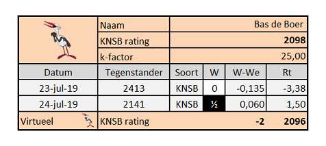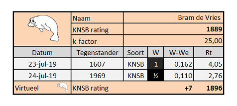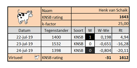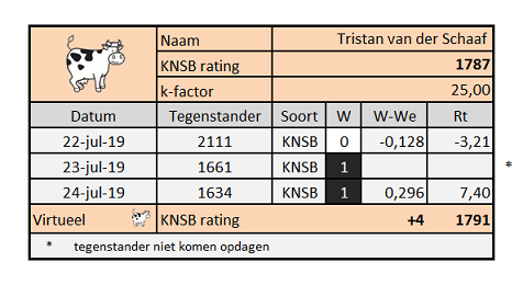 Ik ga misschien snelschaken in Dieren vrijdag, beetje afhankelijk van hoe laat ik klaar ben met de lange pot. Als excuus voor eventuele nullen die nog komen wil ik alvast het indelingsprogramma aandragen. Met 0 uit 2 heb ik zwart tegen een IM-achtige. |