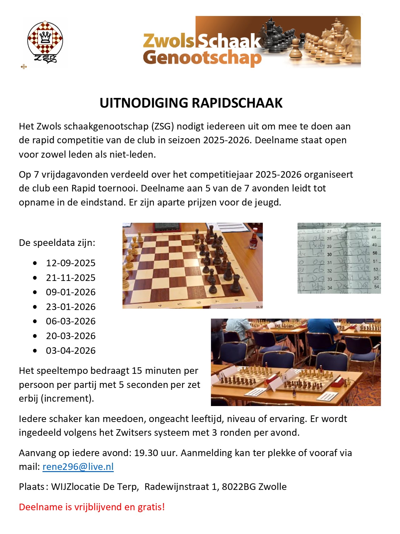 Zaterdag 12 april 2025 -organisatie: Zwols Schaak Genootschap