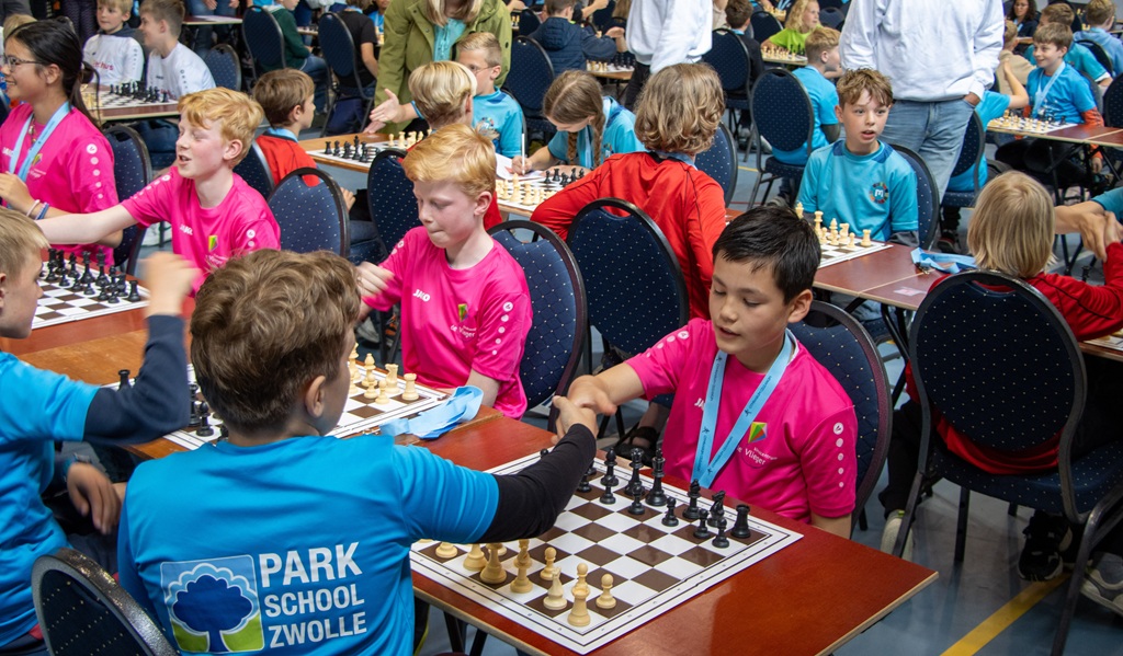 Op woensdag 28 mei en woensdag 4 juni 2025 organiseert het Zwols SchaakGenootschap (ZSG) in samenwerking met het Celeanum en SportService Zwolle (communicatie naar scholen) het schaakkampioenschap voor basisscholen. Het schaaktoernooi vindt plaats bij het Celeanum aan de Zoom 37 in Zwolle. Alle teams spelen gelijktijdig van 13:30 tot omstreeks 17:15 uur de schaakwedstrijden. Woensdag 28 mei is het toernooi voor leeftijdscategorie A en op woensdag 4 juni voor leeftijdscategorie B. Tussen 17:15 en 17:30 uur is de prijsuitreiking. Aan de deelname zijn geen kosten verbonden en alle deelnemers ontvangen een vaantje. Regels bij aanmelding • Een team bestaat uit 4 spelers uit één of meerdere groepen (3 t/m 8). o Een team samengesteld uit kinderen van groep 3 t/m 6 mag meedoen in categorie B op woensdag 4 juni. o Een team met deels of uitsluitend kinderen uit groep 7 of 8 doet mee in categorie A op woensdag 28 mei. o In beide categorieën kunnen maximaal 48 teams meedoen. Een school mag meerdere teams aanmelden in zowel categorie A als categorie B. Doordat de ruimte beperkt is, kan uitsluitend het eerste team per school per categorie gegarandeerd meedoen. Andere aangemelde teams krijgen voorafgaand aan het toernooi bericht of ze mee kunnen doen. o Per team kan eventueel één extra speler worden aangemeld (Per wedstrijd kunnen er 4 spelers gelijktijdig meedoen. Ieder team speelt 6 wedstrijden). • De teams worden begeleid door een docent of door een ouder: o De begeleider helpt de kinderen de juiste schaaktafel te vinden en vult de uitslagenbriefjes in. o De begeleider hoeft de regels van het schaakspel niet te kennen, maar het mag natuurlijk wel. o Via email ontvangt de begeleider een toernooiboekje met de poule-indeling, het toernooireglement en diverse andere wetenswaardigheden. Aanmelden kan door het invullen van het deelnameformulier dat Sportservice Zwolle naar de contractpersonen van de scholen heeft gestuurd. De inschrijving is inmiddels gesloten. In categorie A kunnen nog twee teams. Andere teams die nog aangemeld worden, komen op een wachtlijst. Als er een team uitvalt kan het team bovenaan de wachtlijst meedoen.