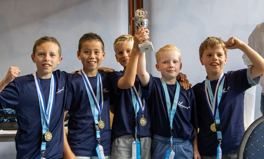 Op 4 juni was het toernooi voor de jongste leeftijdscategorie, namelijk met schakers uit groep 3 t/m 6. Met enkele wisselspelers in de 32 teams deden er in totaal 141 deelnemers mee.