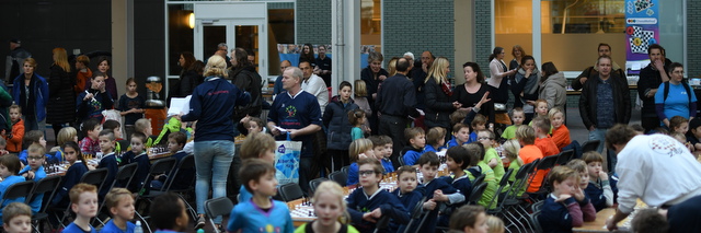 Schaken wordt met het jaar populairder in Zwolle. Een recordaantal van 26 scholen hebben zich aangemeld via Sportservice Zwolle. In de schaakarena konden 78 teams van 4 spelers tegelijk plaats nemen. In aanloop naar het toernooi zijn in allerijl extra schaakborden en schaakstukken aangeschaft. Stichting het Hervormd Weeshuis heeft deze extra onvoorziene kosten vergoed. Na een openingswoord van mevrouw Koster en Wethouder De Heer werd in 5 ronden uitgemaakt wie tot de beste schakers behoren in categorie A voor leerlingen uit groep 7 en 8 en in categorie B voor leerlingen t/m groep 6. In beide categoriën gaan er 8 teams door naar de finale. In Categorie A waren er 8 poules. Aleen de poulewinaars gaan dus door naar de finale. In categorie B zijn er 5 poules. Naast de poulewinnaars gaan ook de 3 beste nummers 2 door.