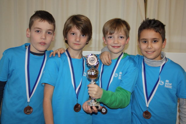 - extreem goed in tweede worden is de Schatkamer. De teams Schatkamer_B1, Schatkamer_B2 en Schatkamer_B4 werden tweede in de Poule J, K en I met achtereenvolgens 14,5, 14,5 en 12,5 bordpunten en gaan ook door naar de finale.